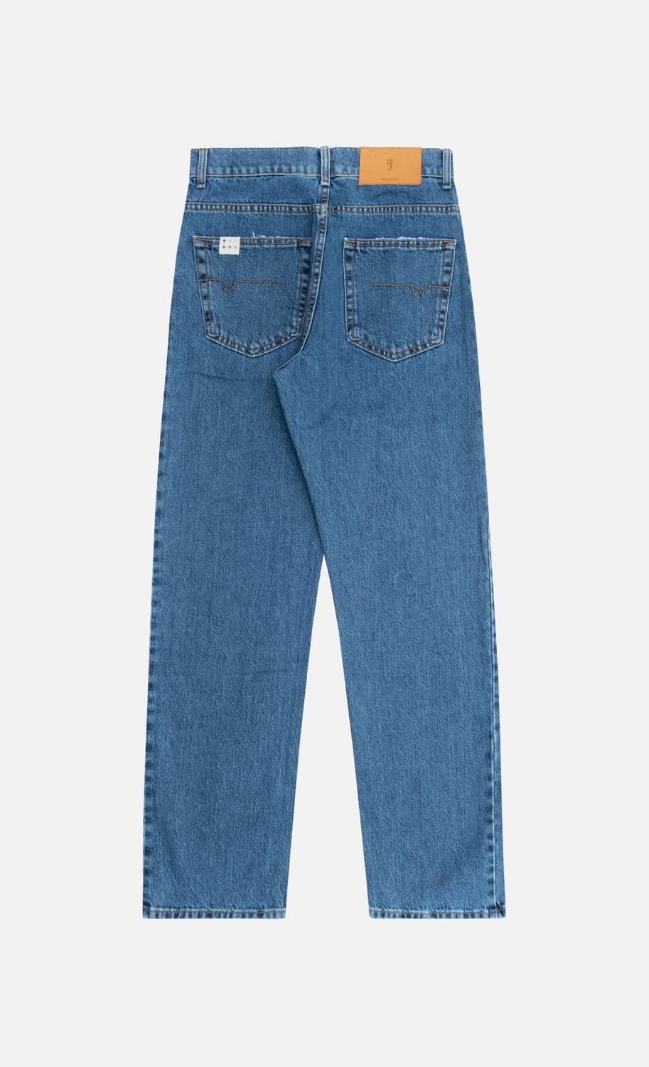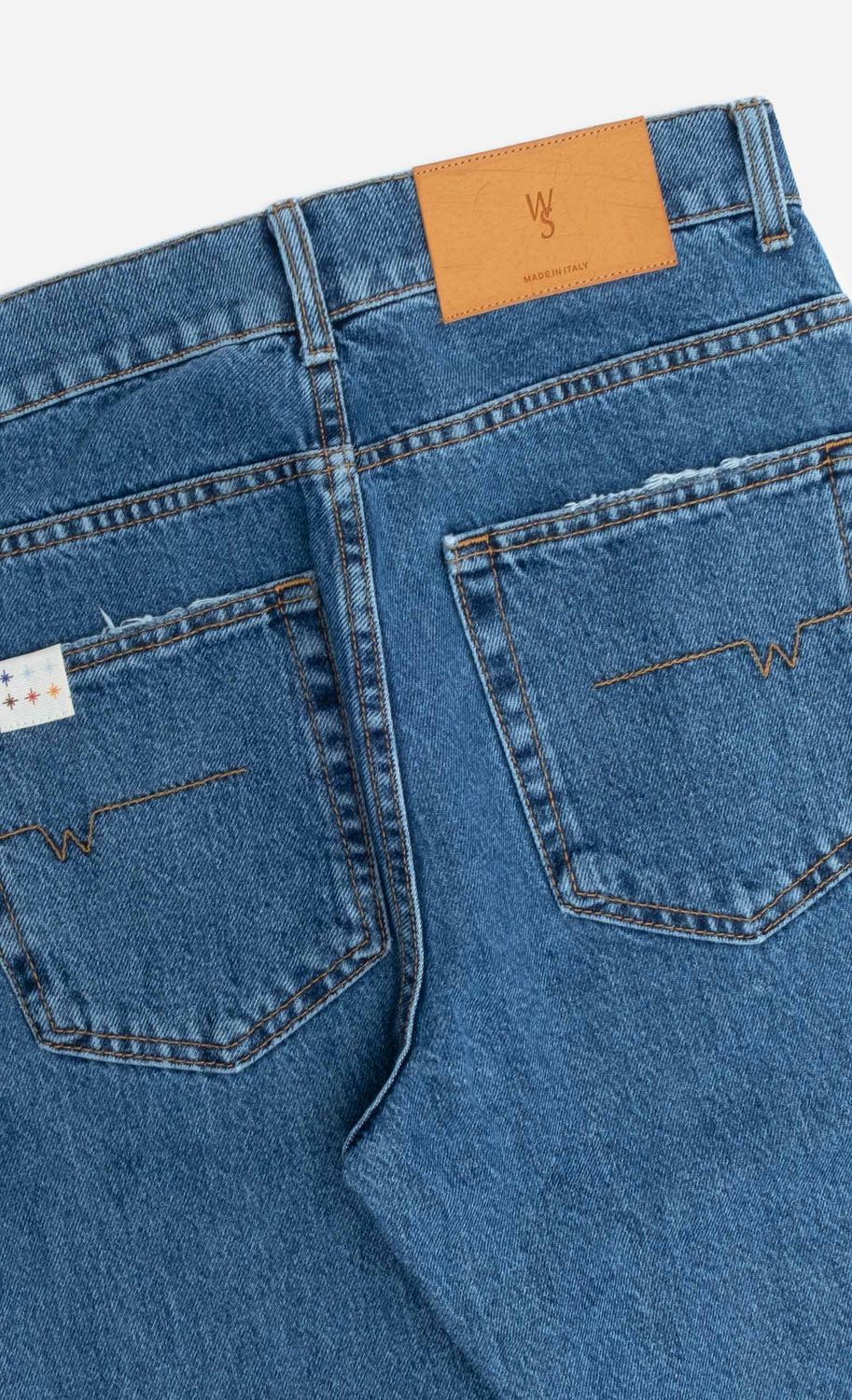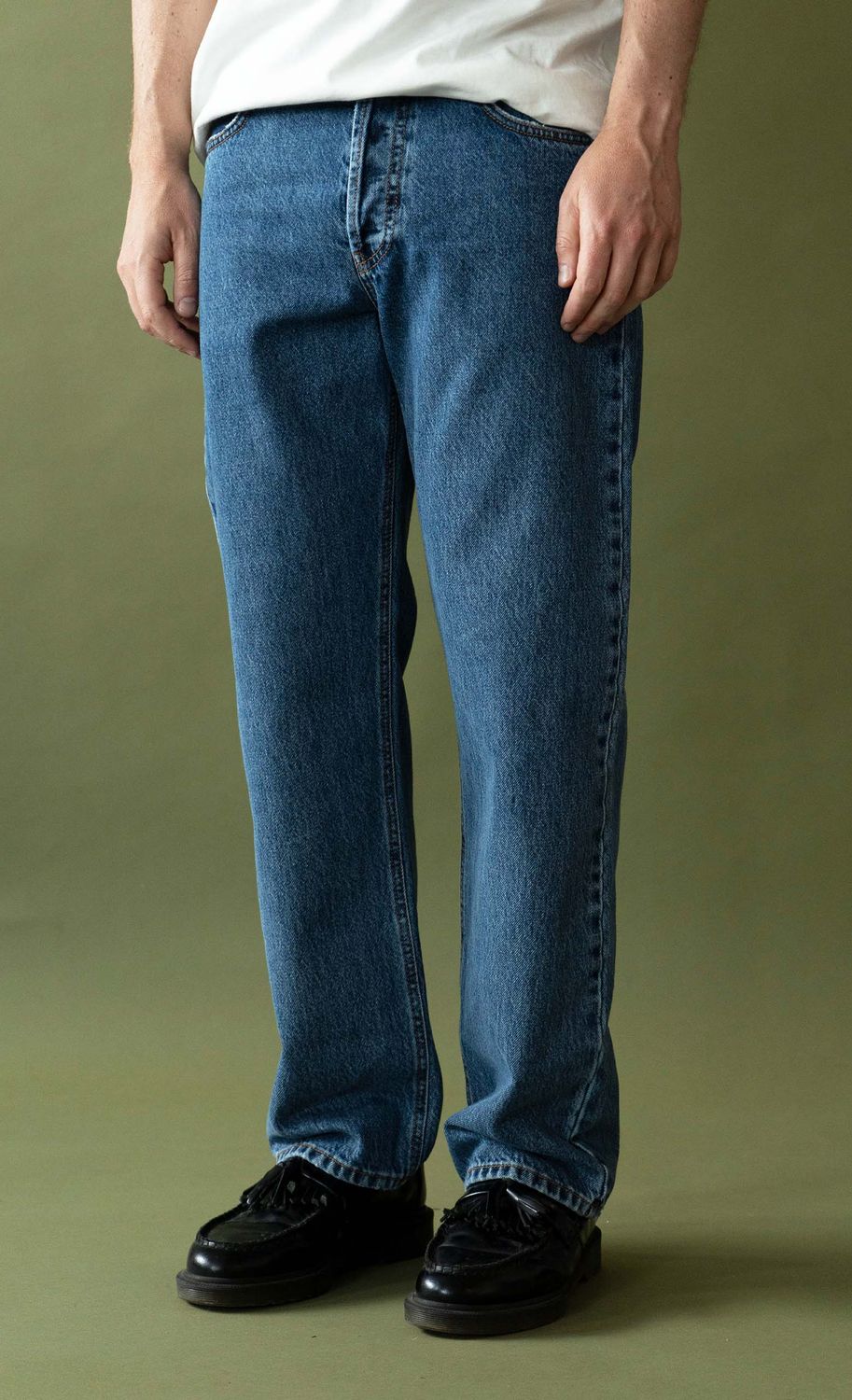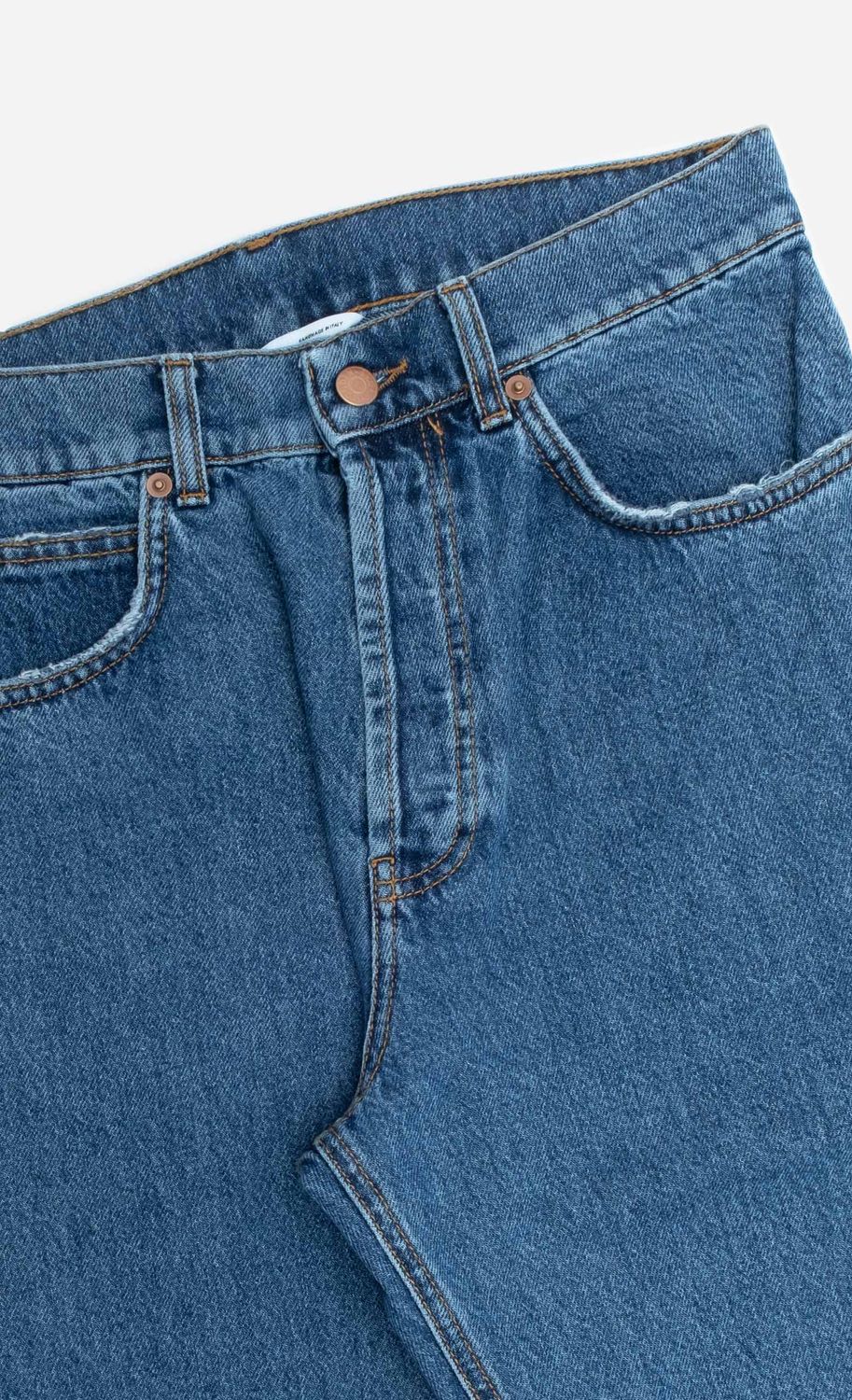 Hose mit niedriger Leibhöhe und weitem Schnitt, lang am Saum.