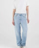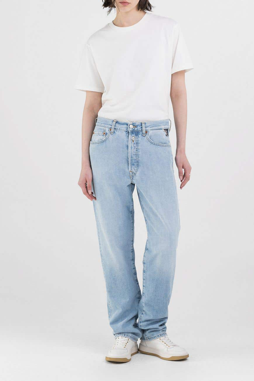 Gerade geschnittene Jeans mit hohem Bund und geradem Bein von der Hüfte bis zum Saum für einen bequemen Sitz. Das Five-Pocket-Modell besteht aus 12-oz-Indigo-Denim aus recycelter Baumwolle in heller Stone-Waschung, die dem Stoff einen Vintage-Look verleiht, und zeichnet sich durch Moustaches und abgenutzte Stellen aus. Die Gesäßtaschen, von denen eine mit einem R bestickt ist, sind mit der ikonischen geschwungenen Naht versehen, während sich auf einer der Vordertaschen ein kleiner Einsatz mit Logo befindet. Abgerundet wird diese Damenjeans durch die Schlaufe mit Replay-Schriftzug und das Logo-Label auf der Rückseite. Die Verwendung von GRS-zertifizierter recycelter Baumwolle unterstreicht das Engagement von Replay für nachhaltige Mode. Doppelter Knopf und Reißverschluss.