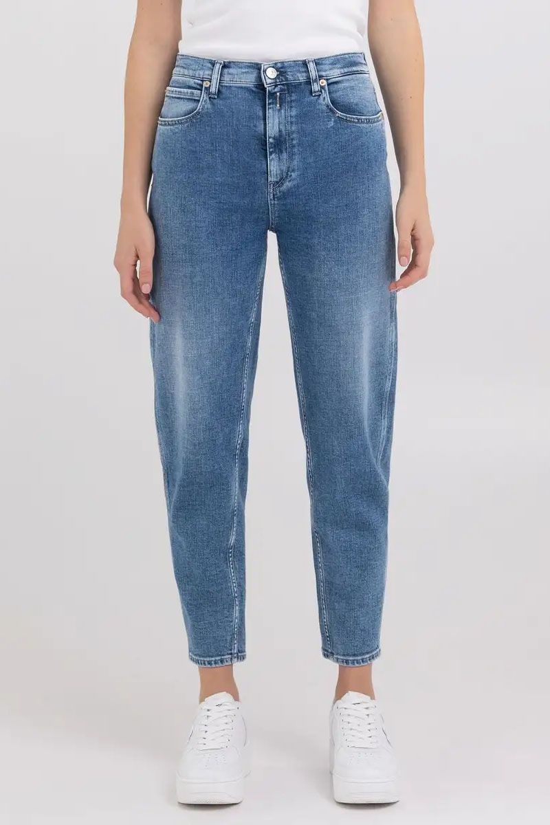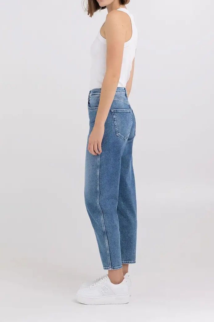 Balloon Fit Jeans mit hoher Taille und ballonartigem Beinschnitt mit engem Beinbündchen. Das Modell ist aus strahlend indigoblauem 11 oz-Comfort Baumwoll-Lyocell-Denim mit mittlerer Waschung gefertigt. Die Fünf-Taschen-Jeans sticht durch ihre Marmor-Behandlung und ihre Abschabungen an den meist beanspruchten Stellen hervor. Ein Verschluss mit Knopf und Reißverschluss rundet das Teil ab.