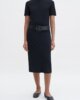 T-Shirt-Kleid in lockerer Passform und knieumspielender Länge aus einer weichen, drapierten, mittelschweren Jerseymischung. Es ist mit Steppnähten und einem Schlitz in der hinteren Mitte versehen. Tragen Sie es an lässigen Tagen mit Sneakern, oder erhöhen Sie es mit einem Absatz.