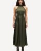 Ärmelloses Midikleid aus Satin mit normaler Passform und ausgestelltem Rockteil. Selbstbindender Verschluss am Rücken und Reißverschluss an der Seite. Schlitzöffnung hinten. Das Hauptmaterial besteht aus einer elastischen Mischung mit recyceltem Polyester. Dieses Produkt ist GRS-zertifiziert. Jede Stufe der Lieferkette erfüllt strenge soziale, ökologische und chemische Anforderungen.
