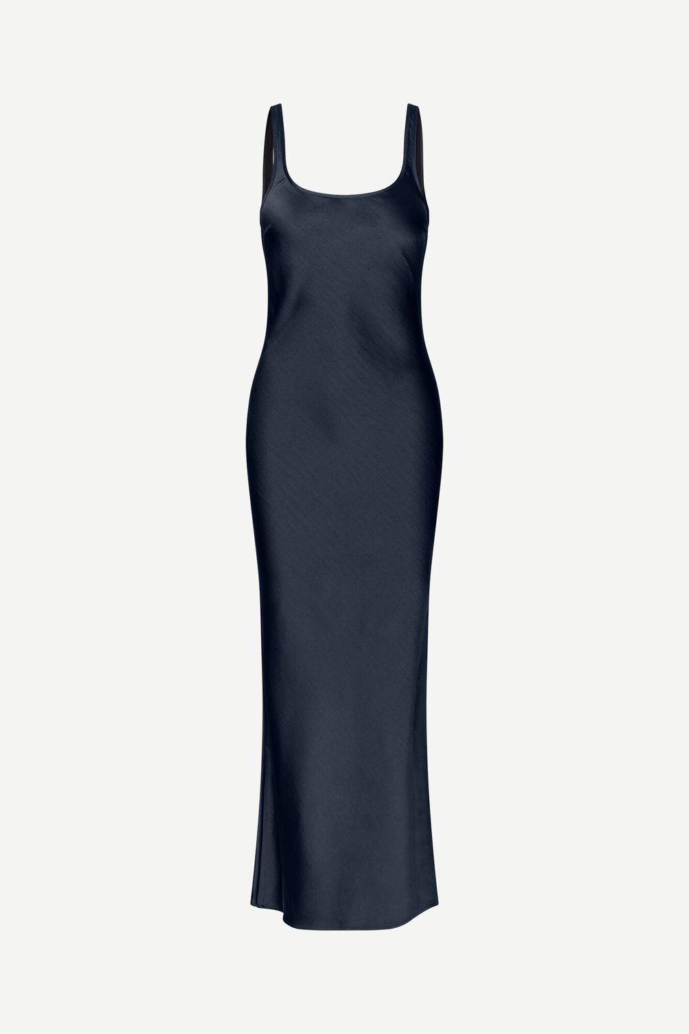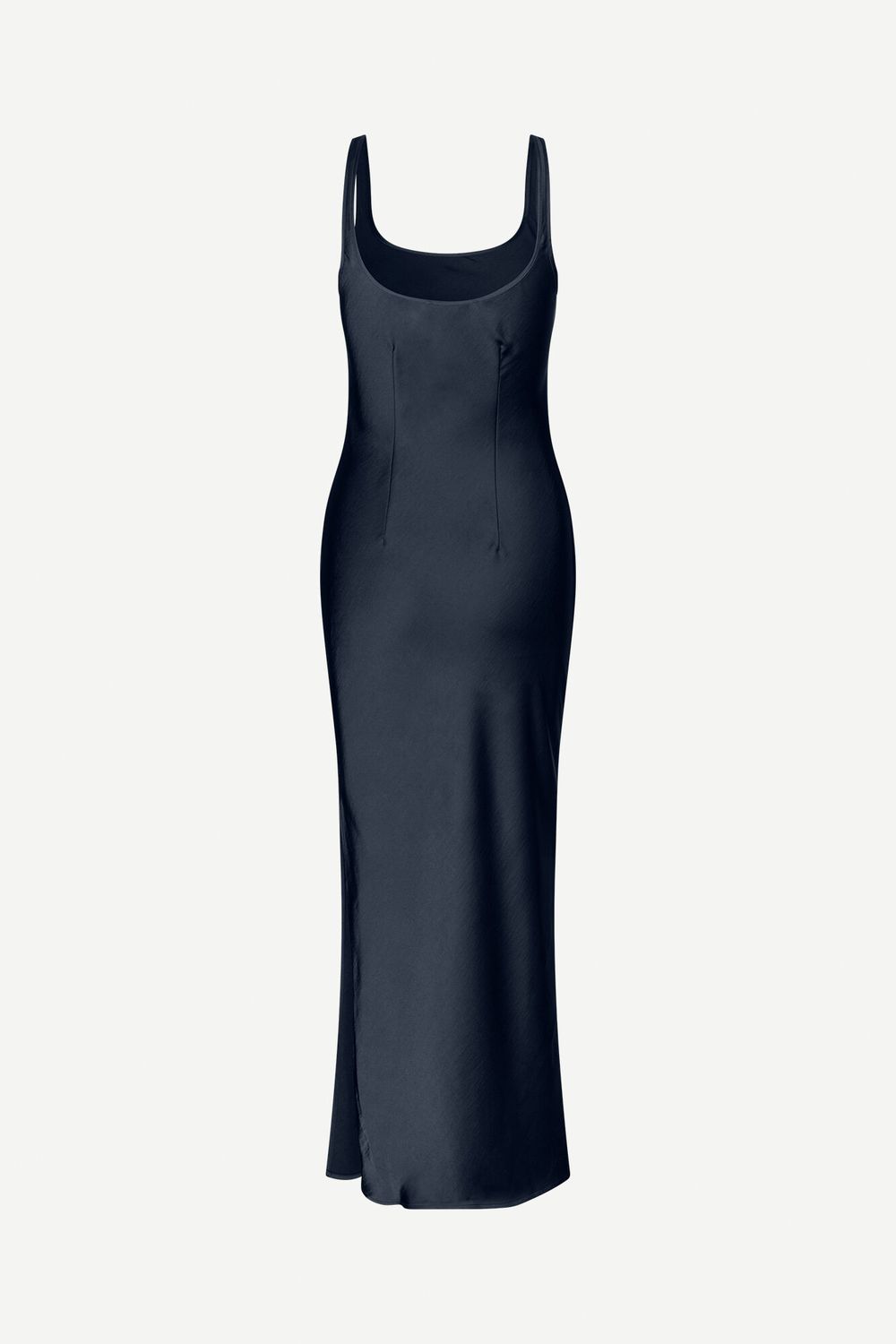 Schräg geschnittenes Maxikleid aus Satin mit schmaler Passform. Schlitz an der Seite. Das Hauptmaterial besteht aus 100% recyceltem Polyester. Dieses Produkt ist GRS-zertifiziert.