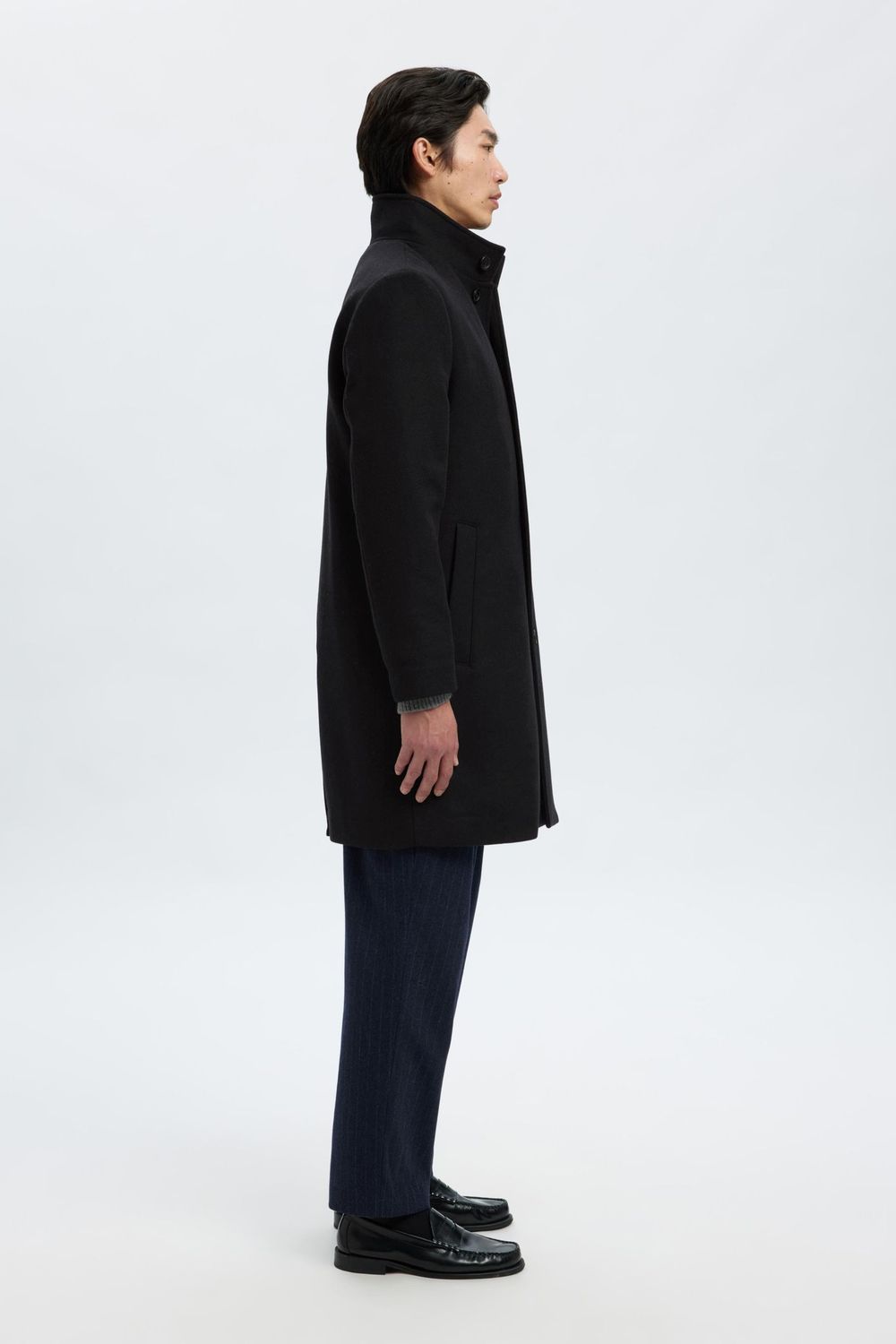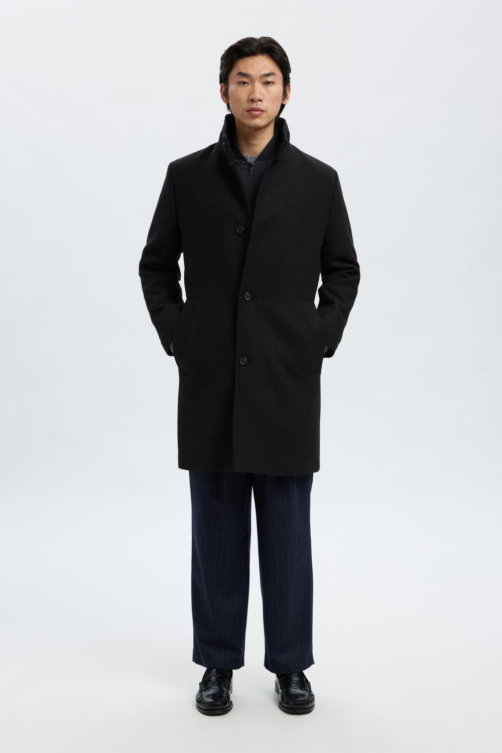 Dieser Mantel aus Wollgemisch verbindet elegante Raffinesse mit saisonaler Funktionalität. Er ist hochwertig verarbeitet, verfügt über Paspeltaschen und Knopfdetails und hat ein gestepptes Innenfutter, das für zusätzlichen Komfort und Wärme sorgt. Trag ihn auf dem Weg zur Arbeit über deinem Büro-Outfit.