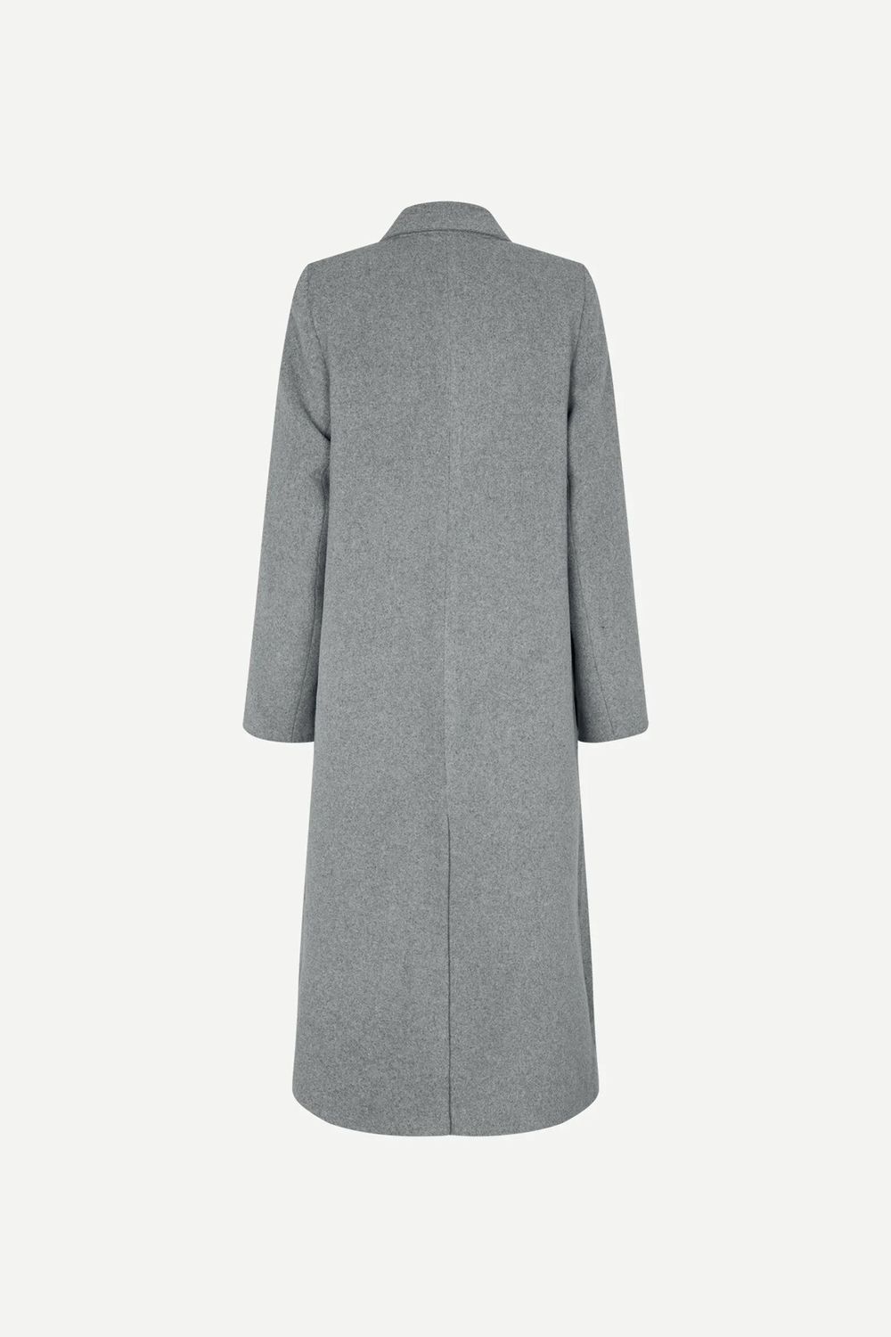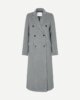 Langer Mantel mit gerader Passform. Zweireihiger Knopfverschluss auf der Vorderseite. Pattentaschen auf der Vorderseite. Gekerbter Reverskragen. Langer Saumschlitz hinten. Vollständig gefüttert. Das Hauptmaterial wird in Italien aus einer Mischung aus recycelter Wolle und recyceltem Polyester gewebt.