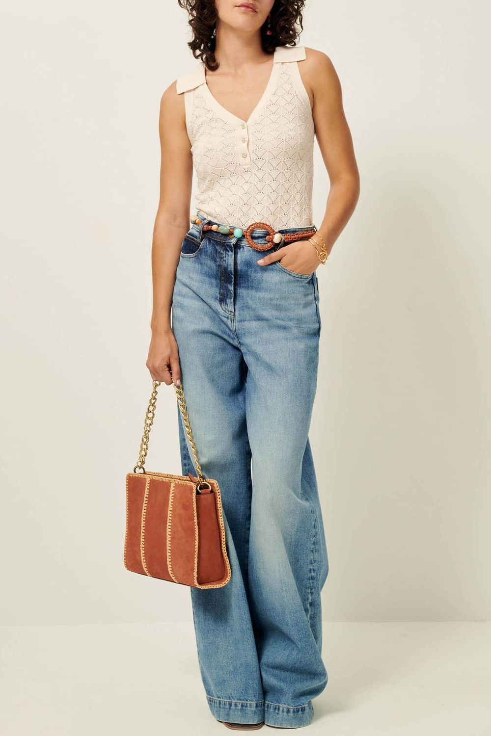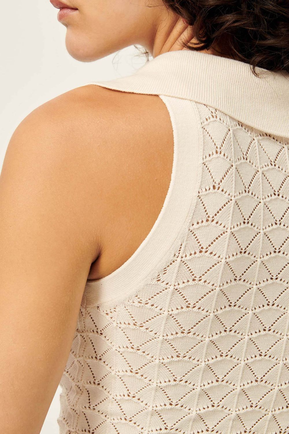 Ärmelloses Poloshirt mit V-Ausschnitt aus zartem Strick mit Muschelmuster.