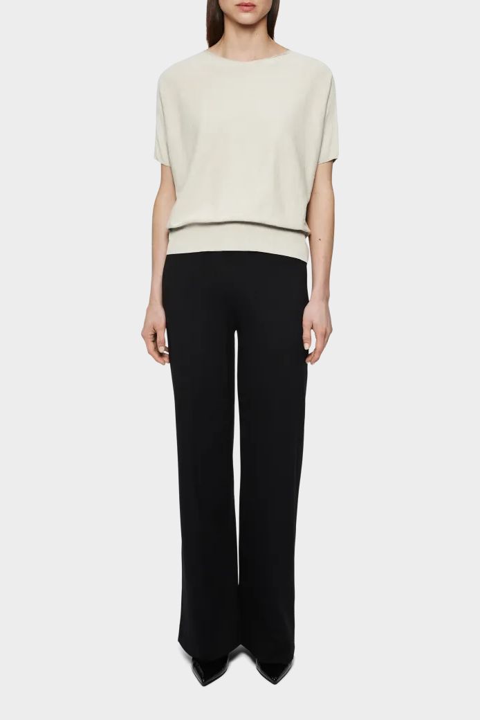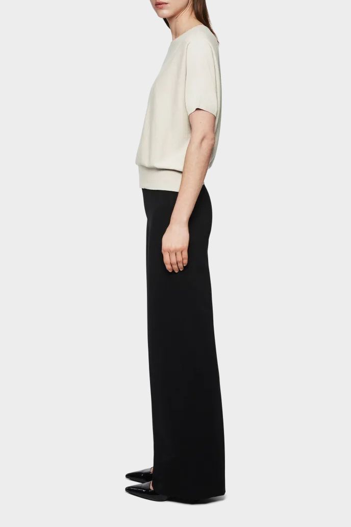SOMELI ist ein lässig geschnittenes oversized Strick-T-Shirt. Das besondere Detail ist der gerollte Kragen und der breit gerippte Saum. Der Baumwoll-Crêpe bietet durch seine Eigenschaften ein weiches und angenehmes Tragegefühl.