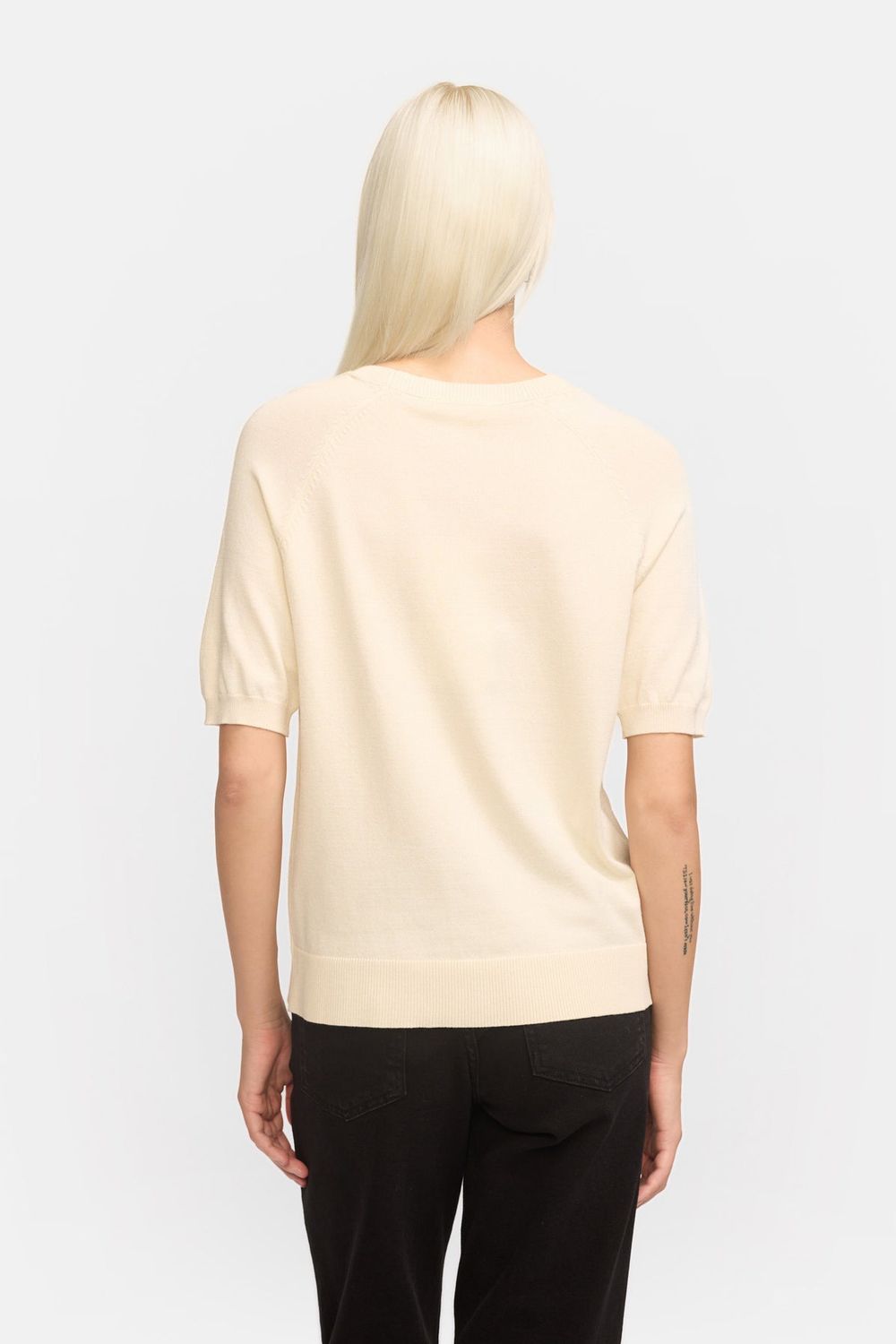 Zeitloser, kurzärmeliger Strick.