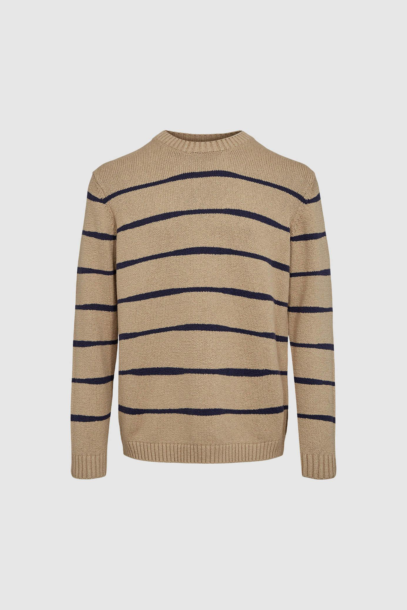 Zeb 3041 ist ein stilvoller Pullover aus Baumwolle, Nylon und Leinen für eine komfortable Qualität. Der Pullover hat eine lockere Passform und ist mit einem Rundhalsausschnitt und Rippbündchen versehen. Er ist mit einem gestreiften Muster versehen.
