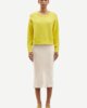 ausgestelltem Saum. Dekorative Borte in der Taille. Recyceltes Polyestermischgewebe mit dezentem Glanz.