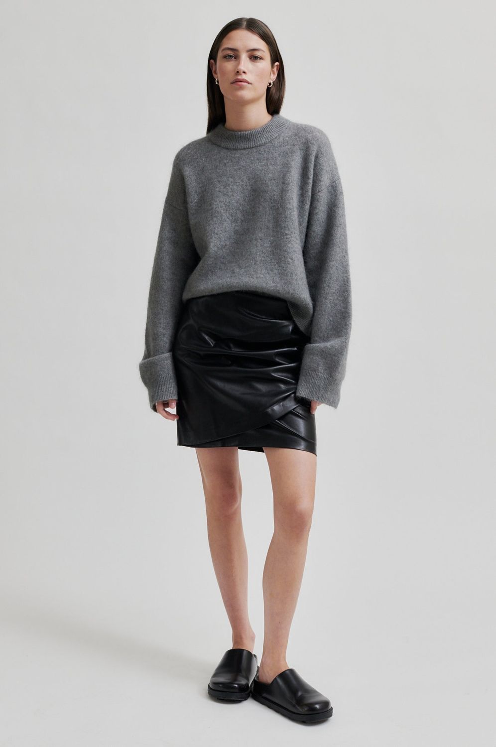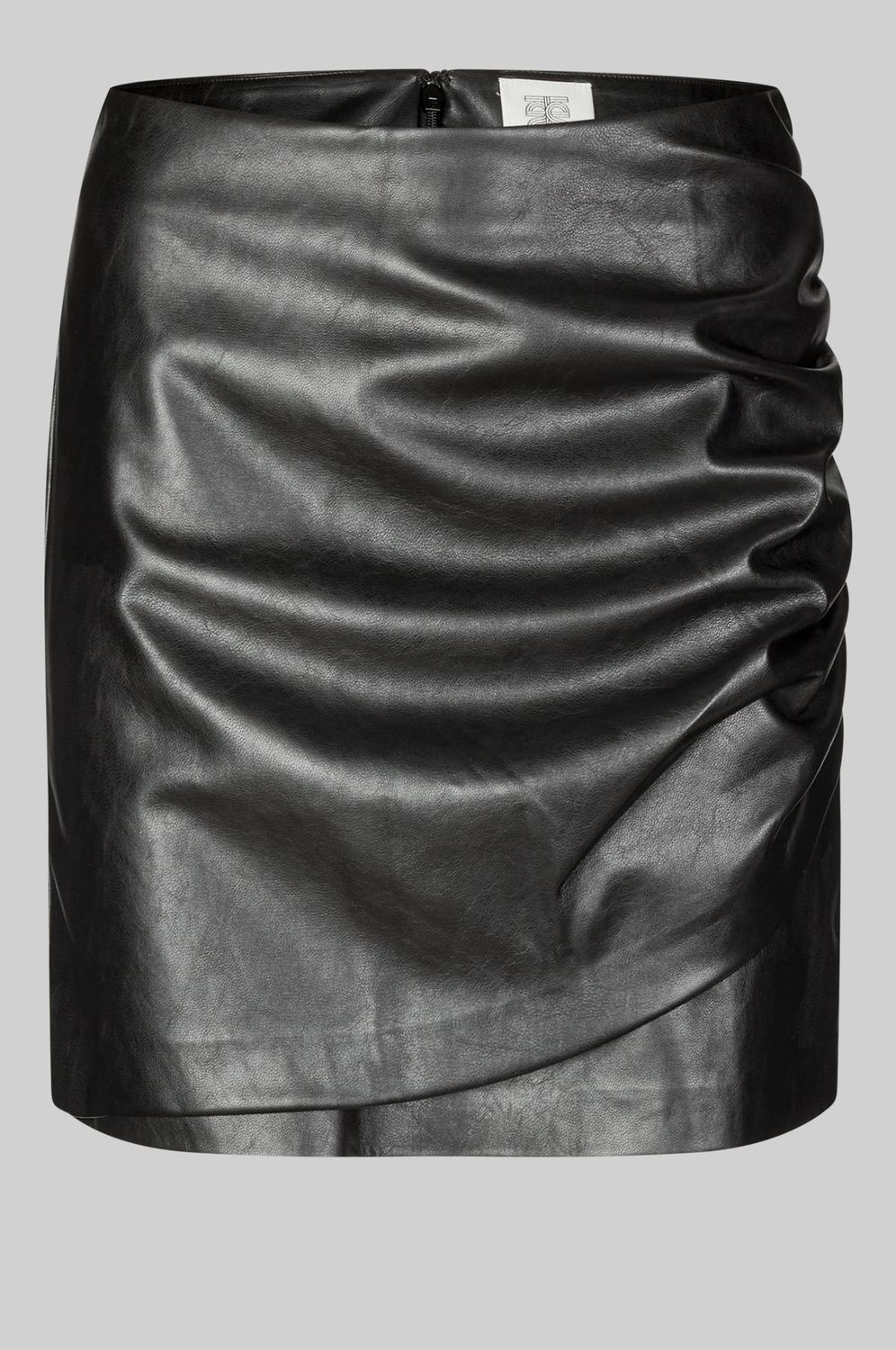 Second Female Minirock aus Kunstleder. Hergestellt aus weichem und glattem Kunstleder. Mit einem verdeckten Reißverschluss auf der Rückseite. Überlappendes Detail auf der Vorderseite mit geraffter Seitennaht für einen drapierten Effekt. Kurze und taillierte Silhouette.