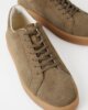 Teo sind lässige Sneaker mit minimalistischer Ästhetik, inspiriert von klassischen Army-Sneakern. Das minimalistische Obermaterial besteht aus olivgrünem Veloursleder mit farblich abgestimmtem Schnürsenkeln und Ziernähten. Die Gummilaufsohle ist 3,5 cm dick.