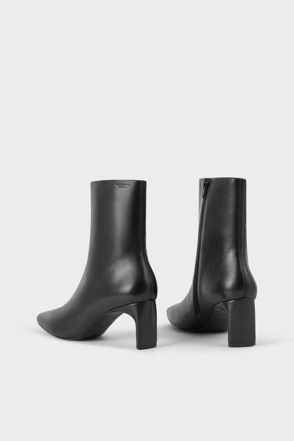 Vendela sind zeitlose Stiefeletten mit einem eleganten Charme. Das Modell ist aus schwarzem Leder gefertigt, hat eine quadratische Zehenpartie, einen seitlichen Reißverschluss und Lederfutter. Die mit Leder überzogenen Blockabsätze sind 7 cm hoch.