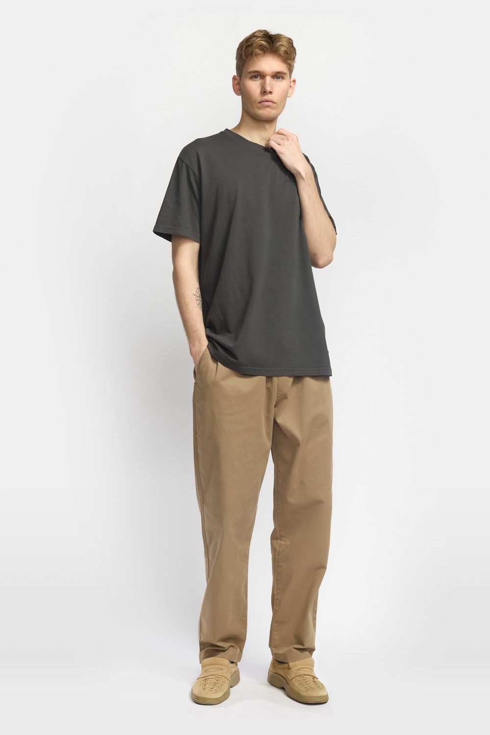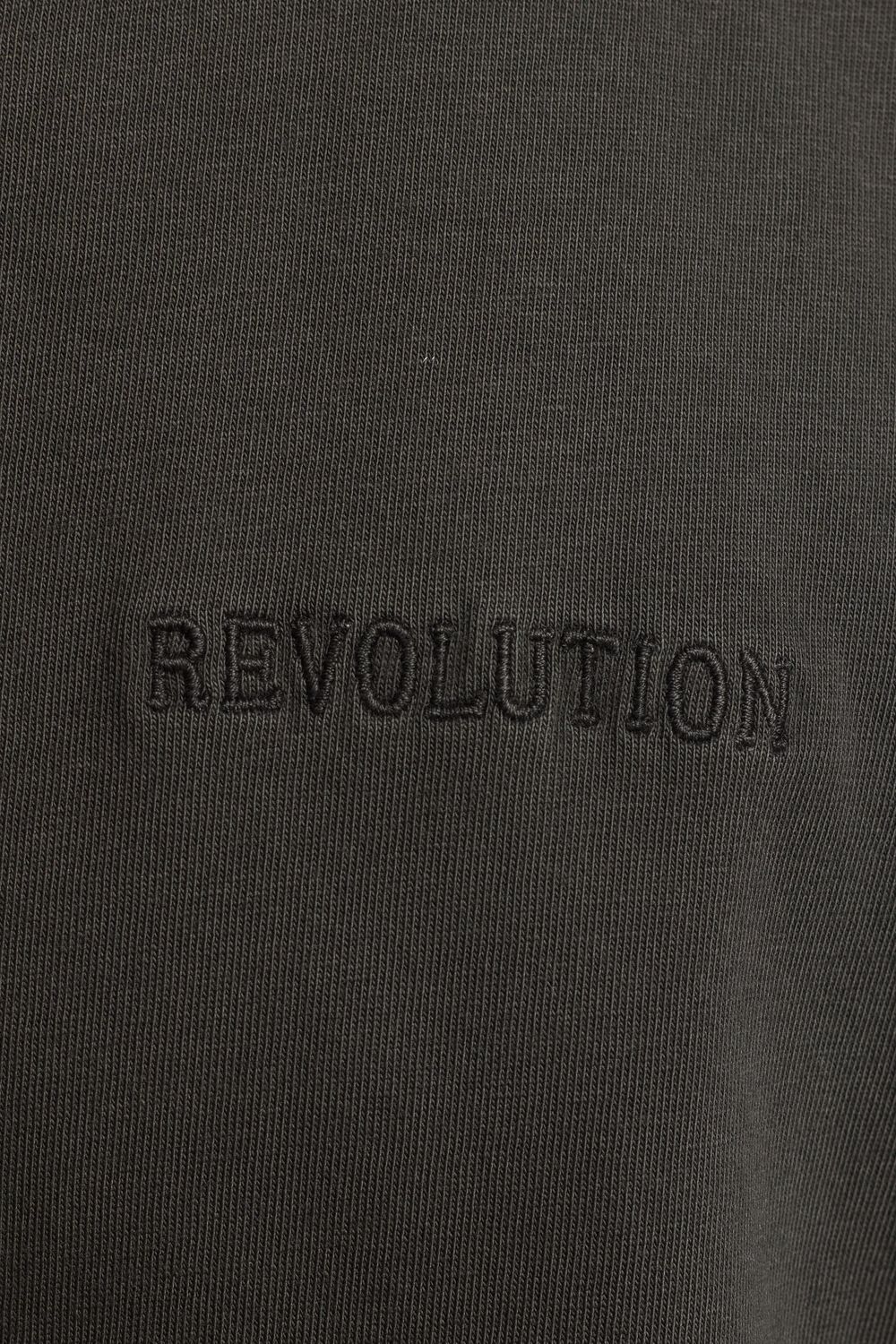 Locker geschnittenes T-Shirt mit Rundhalsausschnitt und kurzen Ärmeln aus kunterbunt gefärbtem Bio-Baumwoll-Jersey mit einem Gewicht von 200 GSM. Das T-Shirt hat eine kleine „Revolution“-Stickerei auf der Brust und ein Markenlabel am unteren Rand. Der Färbeprozess, den dieses T-Shirt durchlaufen hat, verleiht dem T-Shirt einen coolen Vintage-Look, der mit der Zeit immer mehr Charakter bekommt. Die Veredelung des T-Shirts macht es außerdem weich und sorgt für Stabilität und Haltbarkeit des Stils.