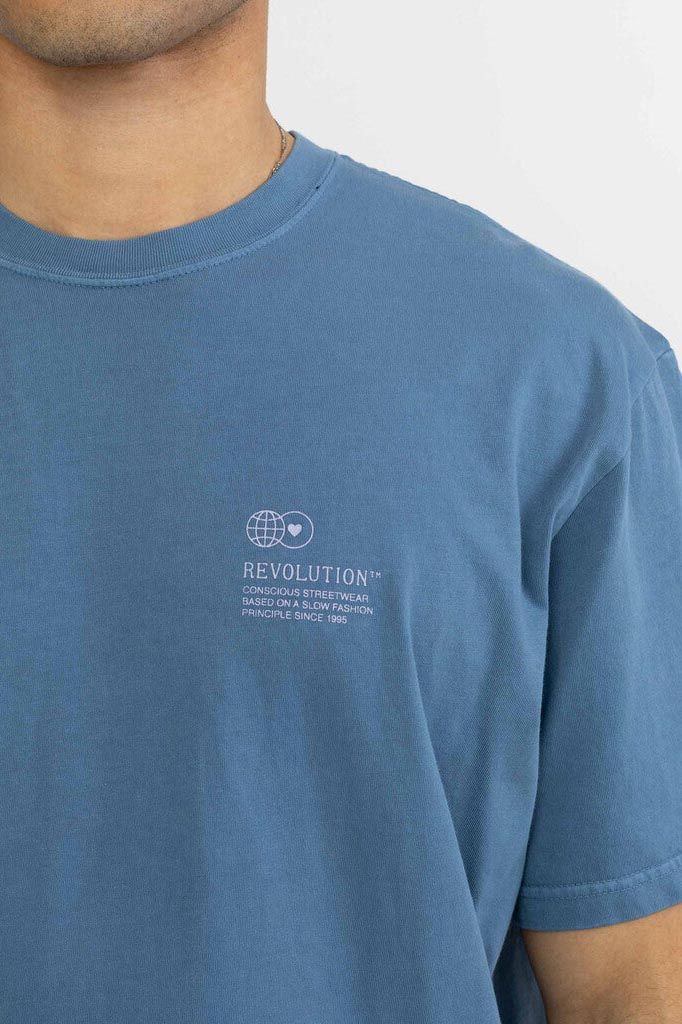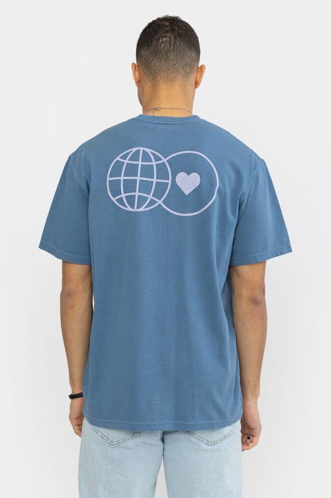 Ein locker sitzendes T-Shirt mit Rundhalsausschnitt aus Bio-Baumwolle mit einem Druck auf der Vorder- und Rückseite.