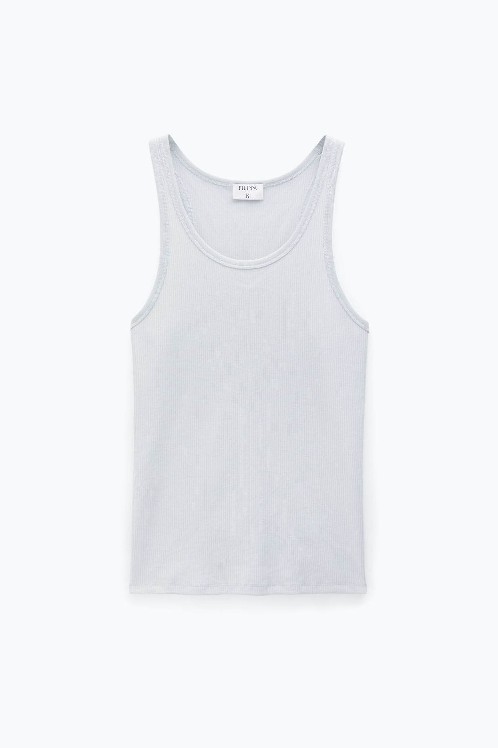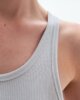 Das Rib Tank in Hellgrau hat eine schmale Passform und Hüftlänge aus gerippter Bio-Baumwolle mit Stretch.
