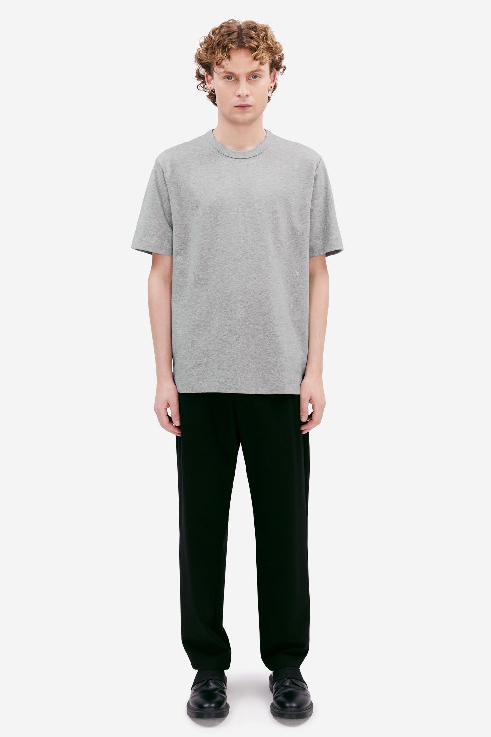 Hadar ist ein locker geschnittenes T-Shirt aus Double-Faced Jersey-Stoff, einer schweren Baumwolle, die einfache T-Shirts in den Luxus-Bereich bringt. Das Model ist 186 cm groß und trägt Größe M.
