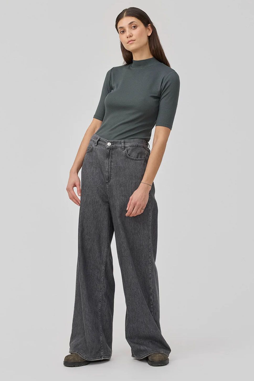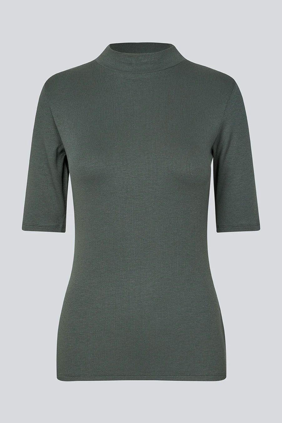 Kurzärmeliges T-Shirt mit hohem Halsausschnitt. Krown T-Shirt in Harbor Green ist in einer schönen Rippqualität und hat eine enge Passform.
