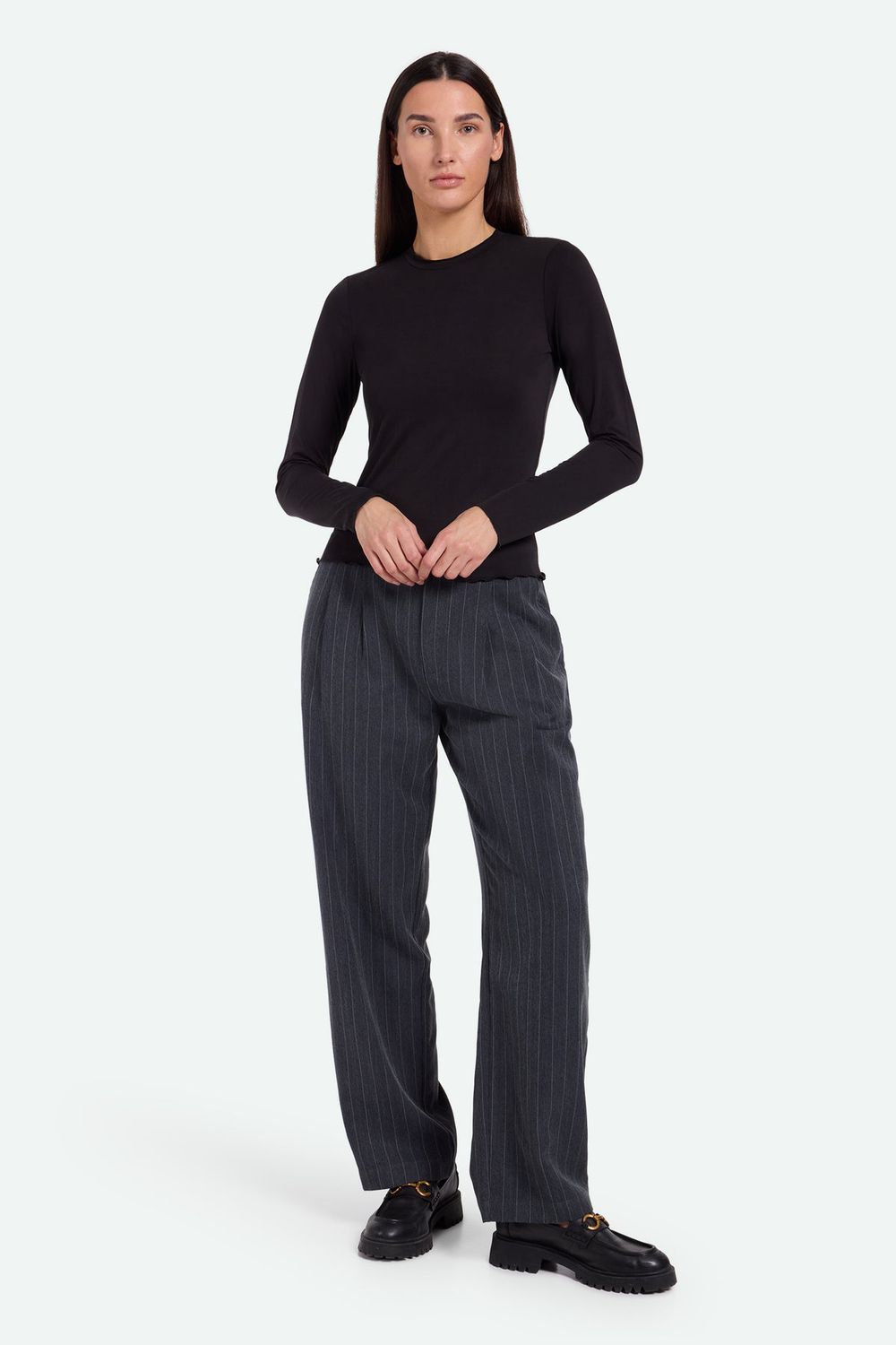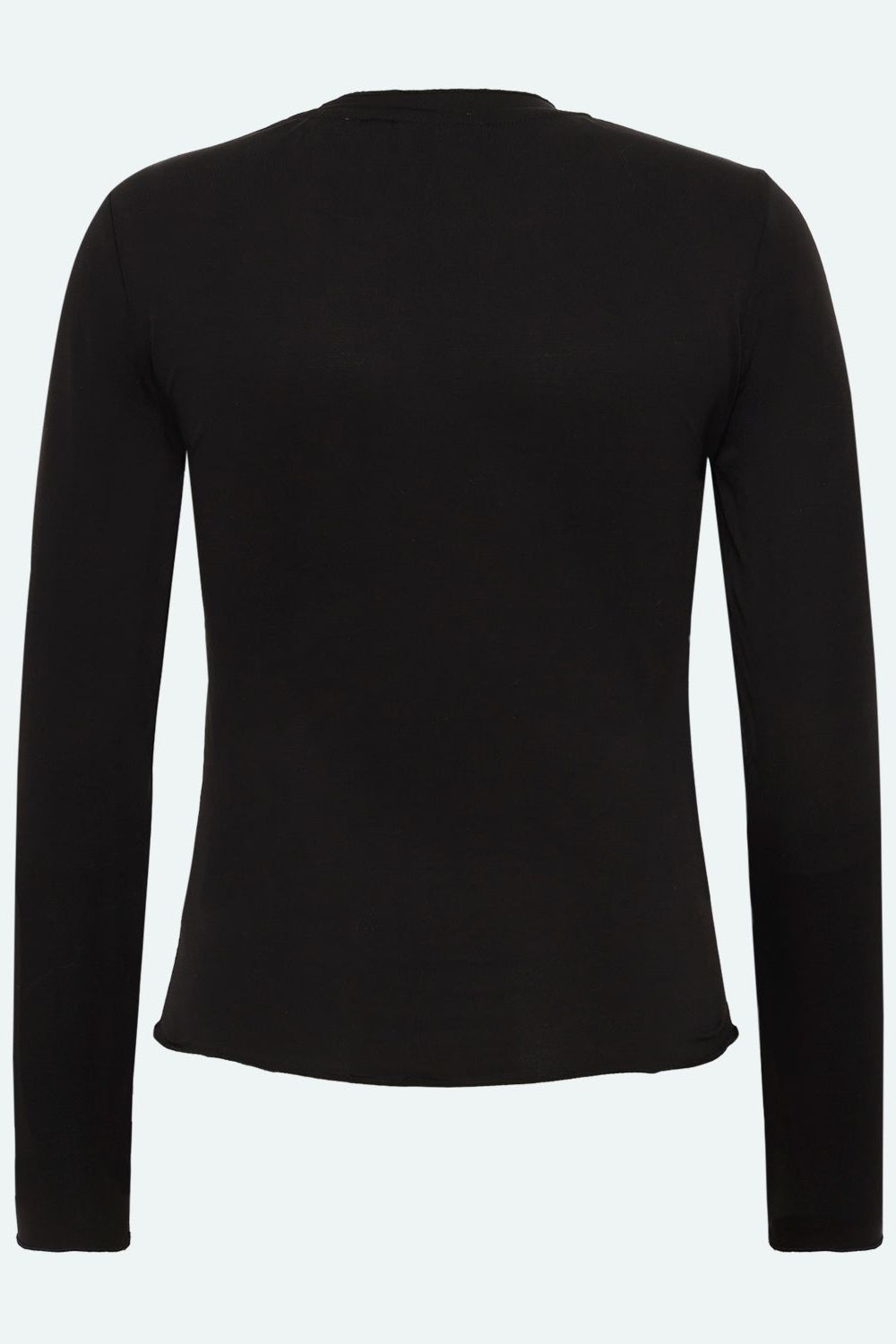 Markhild ist ein langärmeliges T-Shirt aus 77% Modal und 23% Polyester für eine weiche und dehnbare Qualität. Das Trikot hat eine schmale Passform und ein schlichtes Design mit gewellten Kanten. Das Model ist 179 cm groß und trägt die Größe Small.