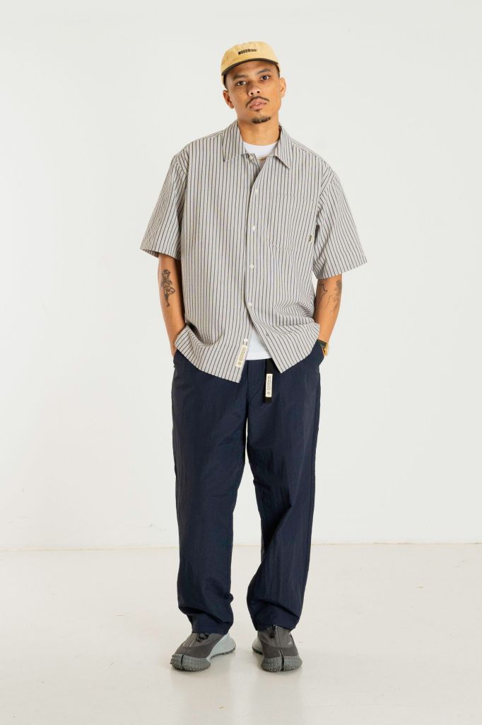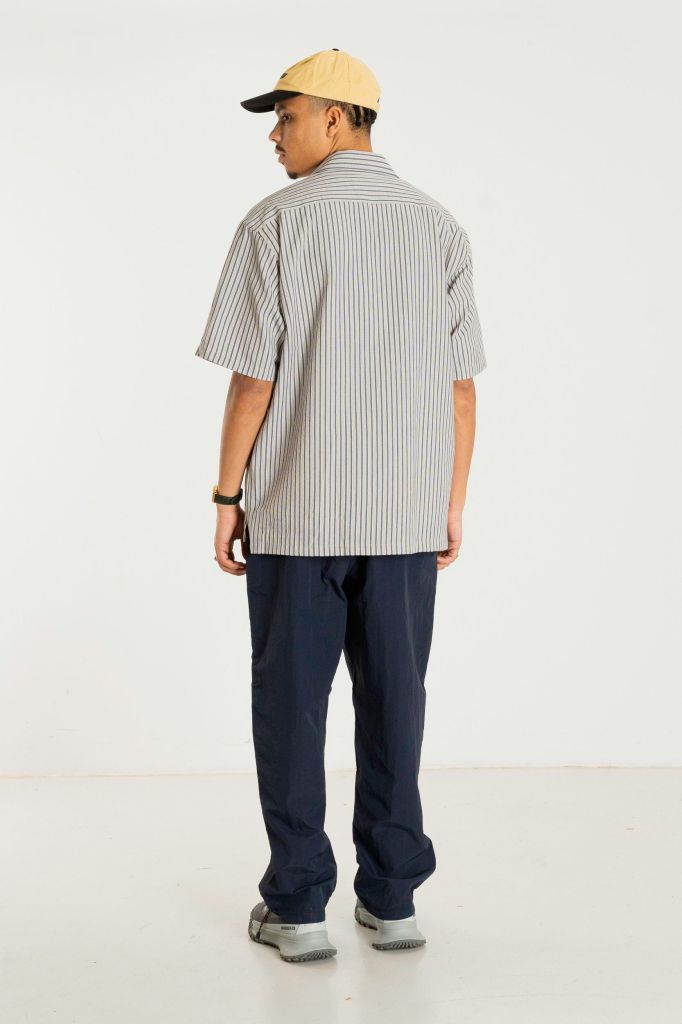 Mit kurzen Ärmeln, klassischem spitzen Kragen, durchgehender Knopfleiste und Brusttasche