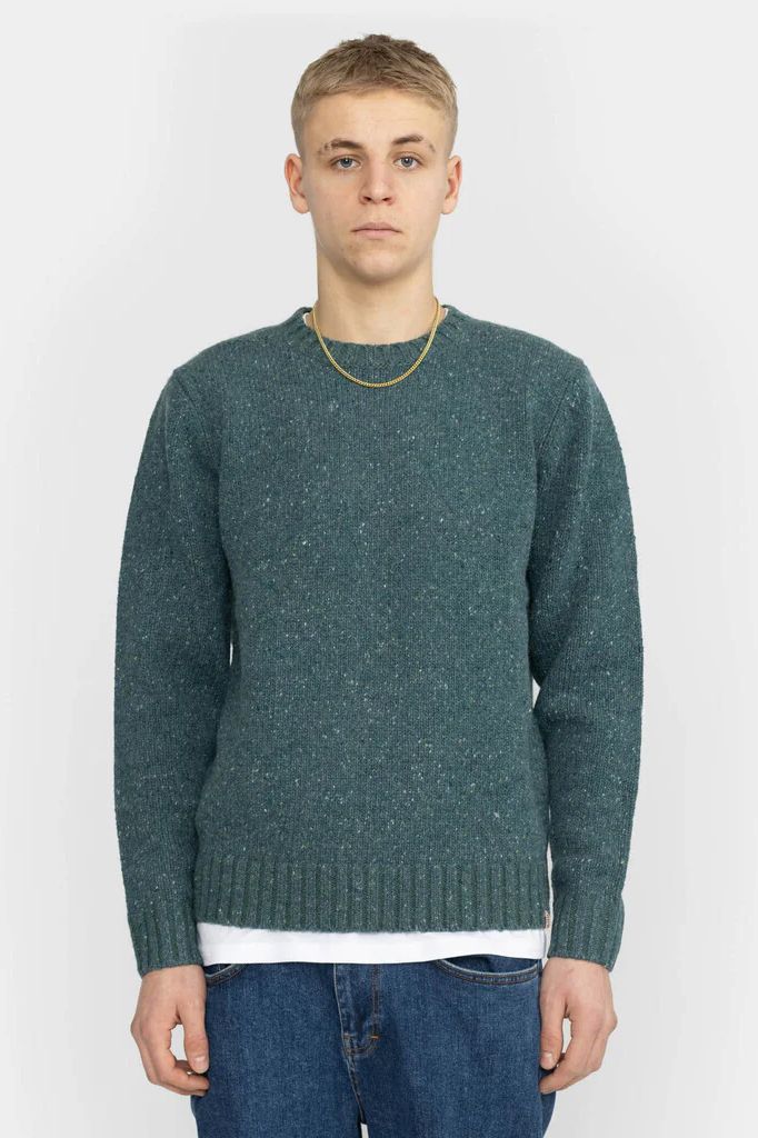 Eine Mischung aus Alpaka und extrafeiner, weicher Merinowolle verleiht diesem Strickpullover ein weiches und klobiges Gefühl. Nylon wurde dem Garn zugesetzt, um es leichter und haltbarer zu machen. Der Pullover mit Rundhalsausschnitt und normaler Passform ist in einer Reihe von Farben mit einer subtilen Noppentextur erhältlich, die einen Mélange-Effekt erzeugt. Gestrickt in der Stärke 3, können Sie diesen schweren Pullover im Herbst als Einzelstück und im Winter als Lagenstrickstück verwenden.