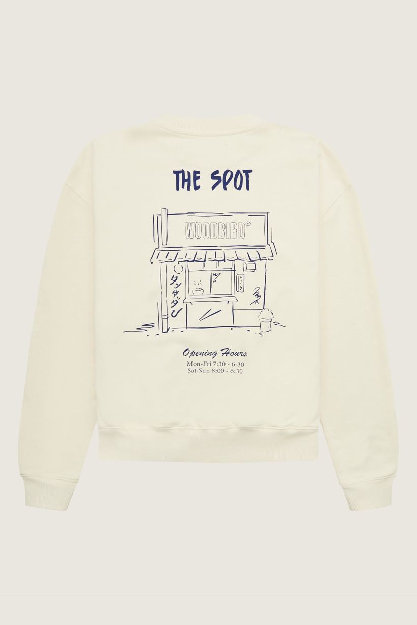 Cupe Spot crewneck with round neckline, rib edges and small logo print.