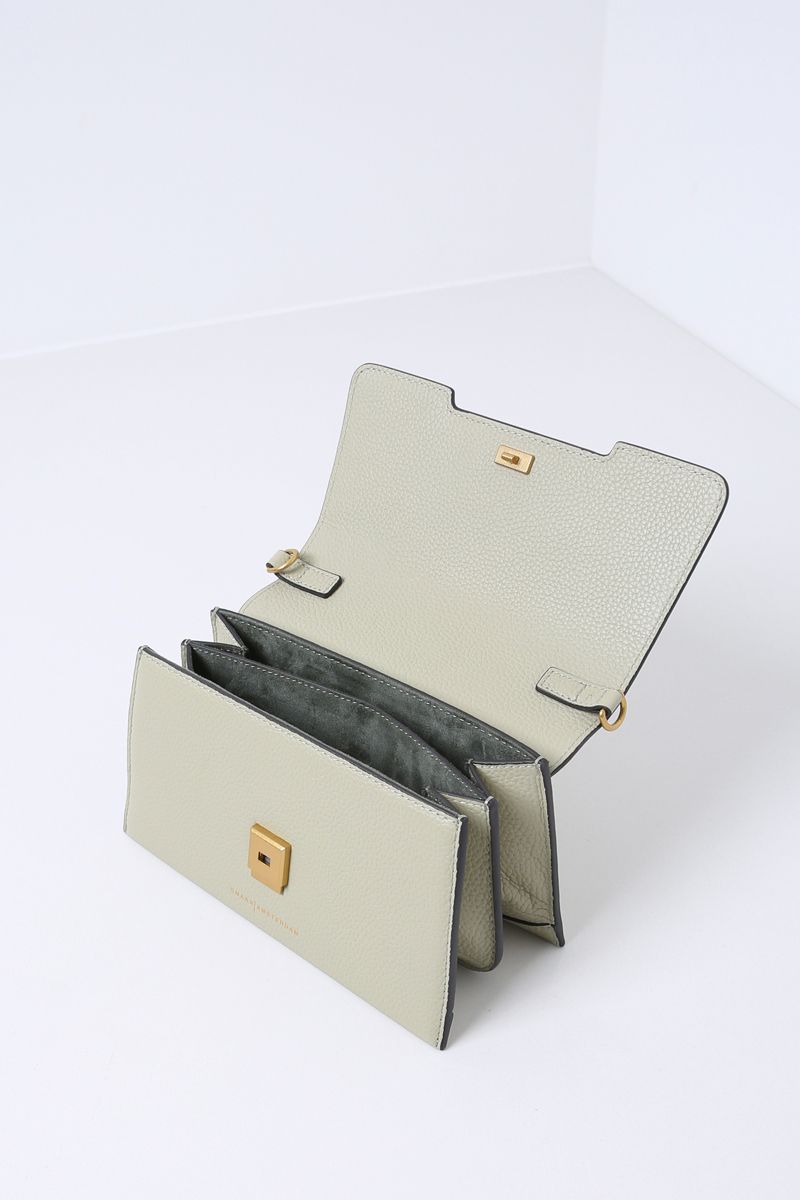 Die BITTI wird vorne mit einem Schnappverschluss geöffnet. Im Inneren hat die Tasche zwei Fächer und ein zusätzliches offenes Fach auf der Rückseite und ist mit Veloursleder (Viskose) gefüttert. Die Tasche ist aus weichem und geschmeidigem Rindsleder gefertigt. Mit dem abnehmbaren Lederschulterriemen kannst du die Umhängetasche auch als Crossbody-Tasche tragen.