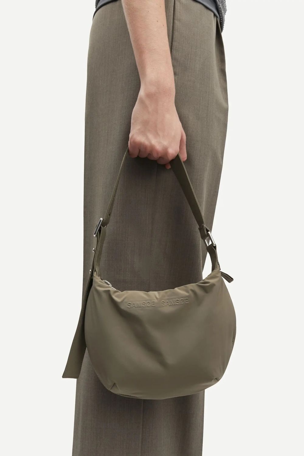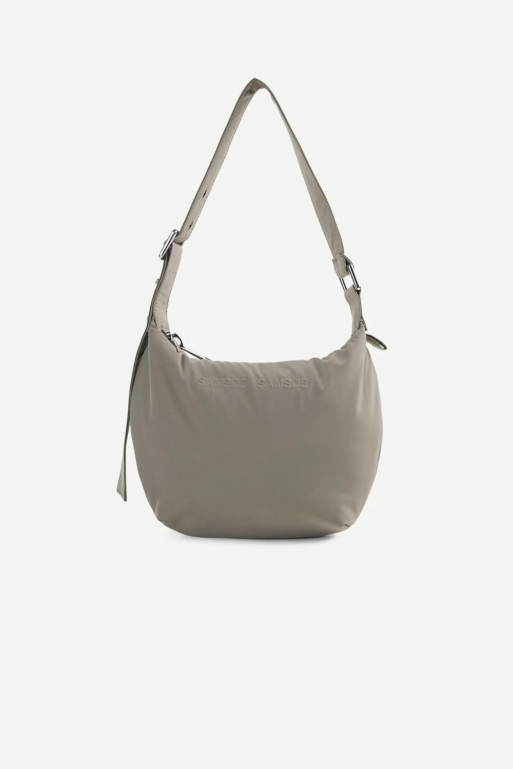 Kleine Schultertasche mit verstellbarem Riemen. ReiĂverschluss auf der Oberseite. Tasche mit ReiĂverschluss auf der Innenseite. Silberfarbene Hardware. SAMSĂE SAMSĂE-Branding auf der Vorderseite. Hauptmaterial und Futter aus 100 % recyceltem Polyester.